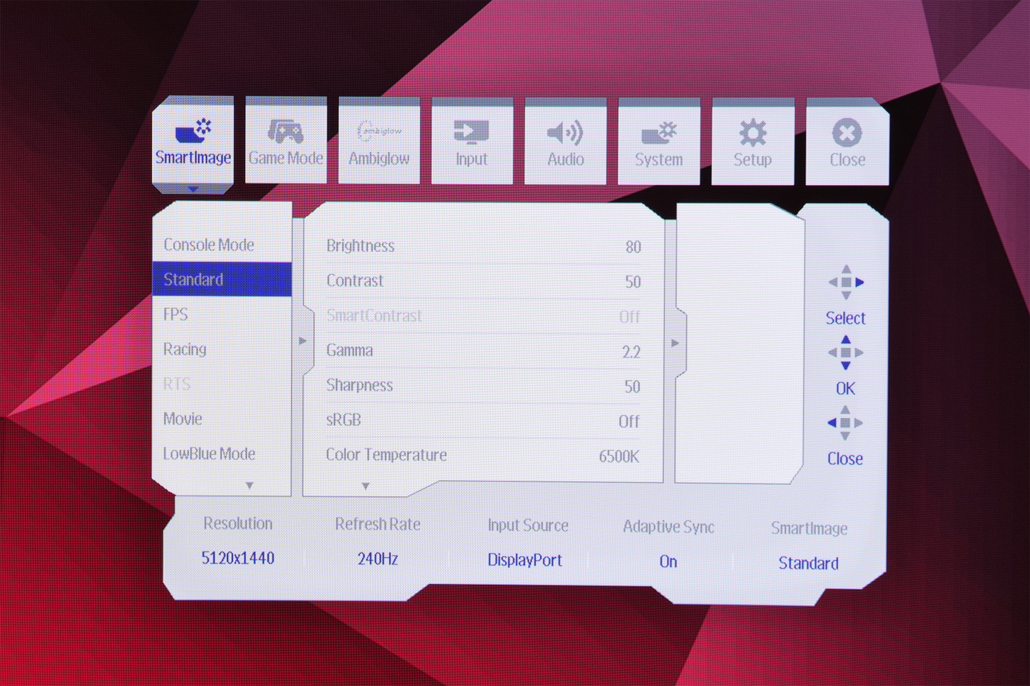 Philips' SmartControl app also makes a return, featuring possibly one of the ugliest user interfaces I have seen in recent times, but it is an option for those who want to quickly adjust settings direct from the Windows desktop, as opposed to reaching for the joystick. It can also be used to upgrade firmware, though I discovered one quick of the SmartControl software here, as for some reason the firmware upgrade option was greyed out using the latest version of the software, but it worked fine on v6.16. Definitely something for Philips to look in to.