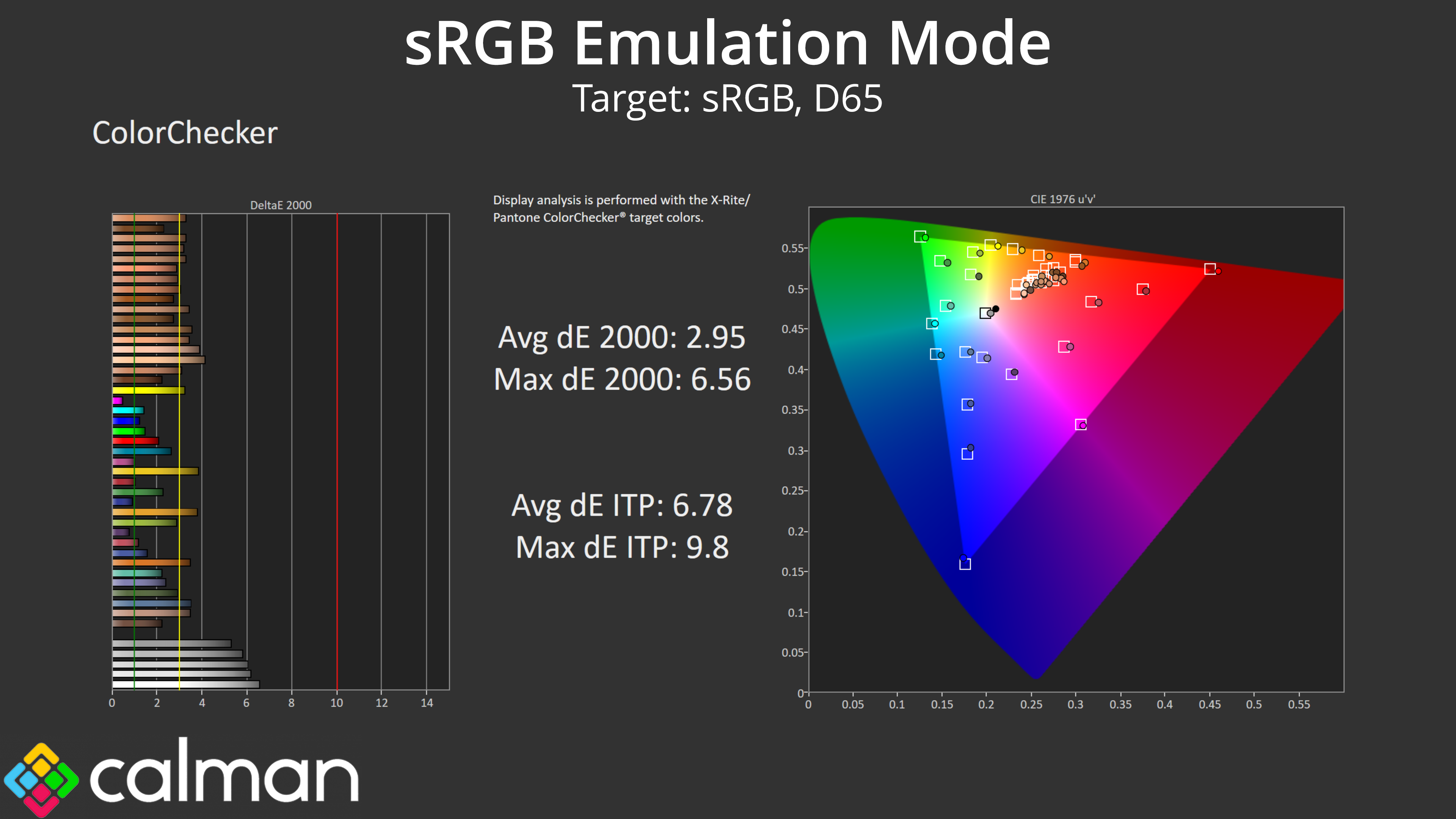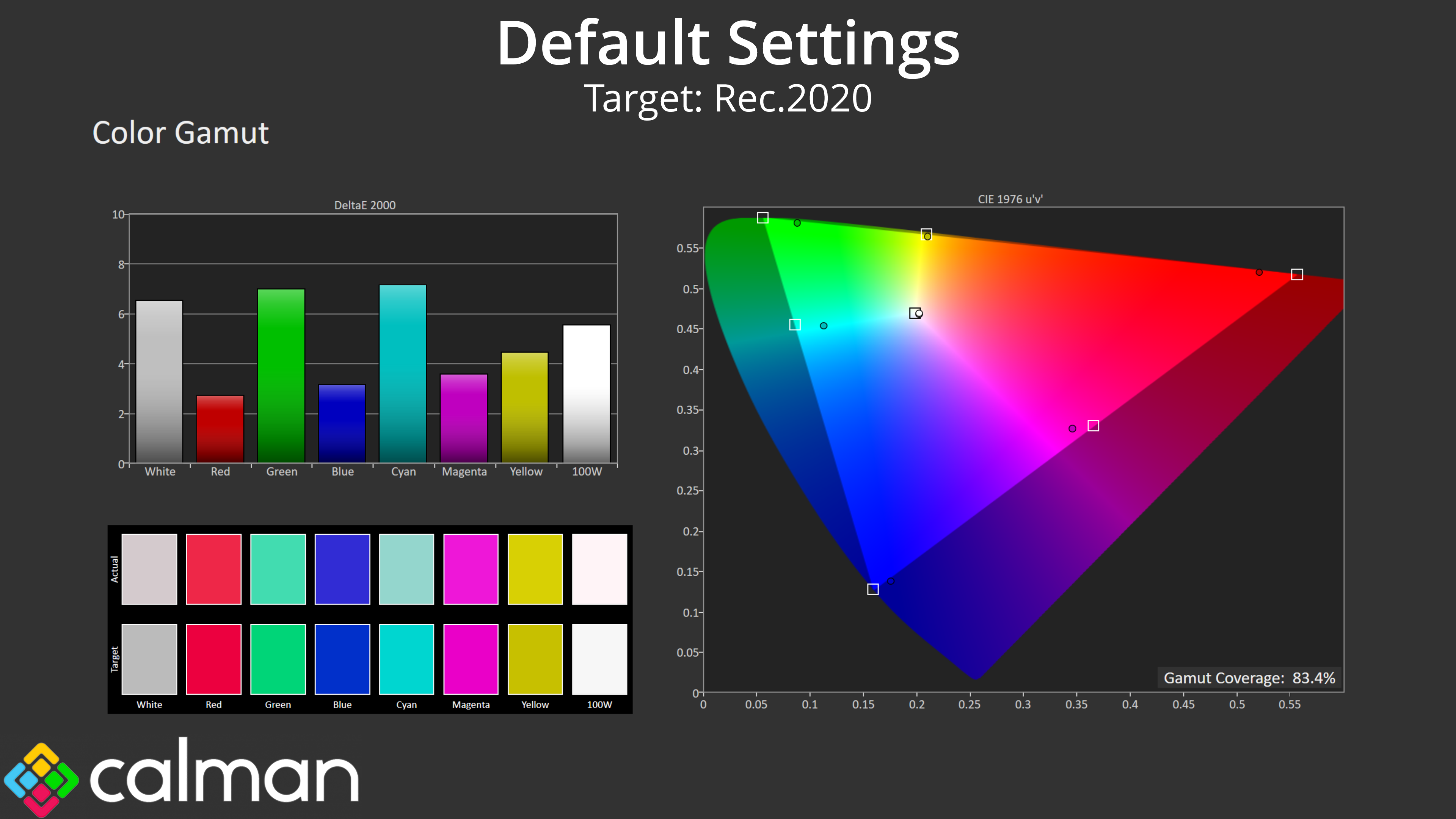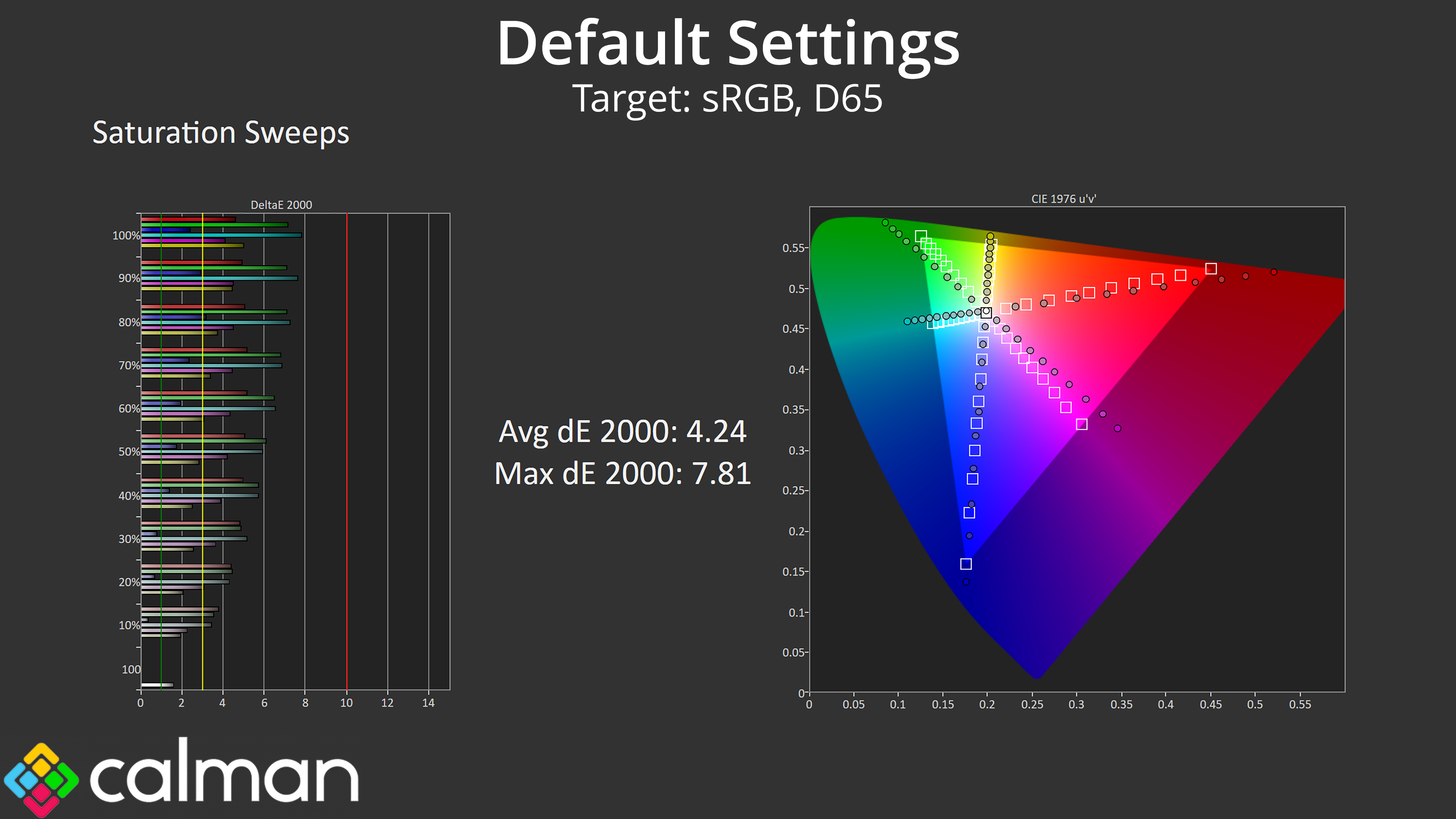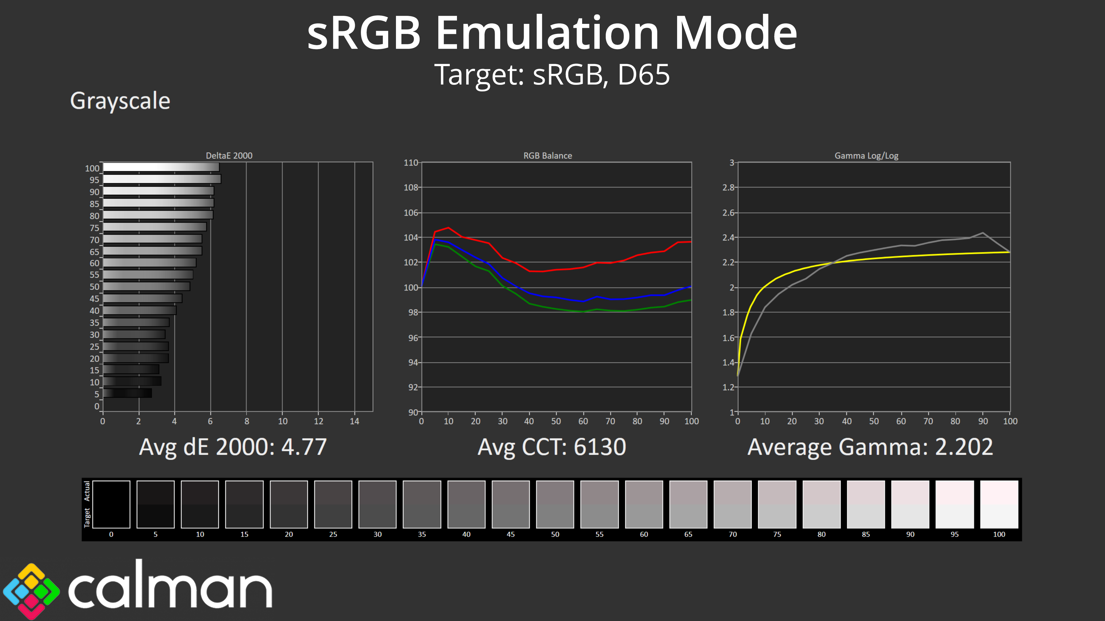 Thankfully, Calman Ultimate did a great job, mapping the sRGB gamut perfectly. It also ironed out the colour balance issues, this time delivering an average CCT of 6473K, with near-flawless gamma tracking too. Colour accuracy also improved tremendously, with an average dE 2000 of 0.59.