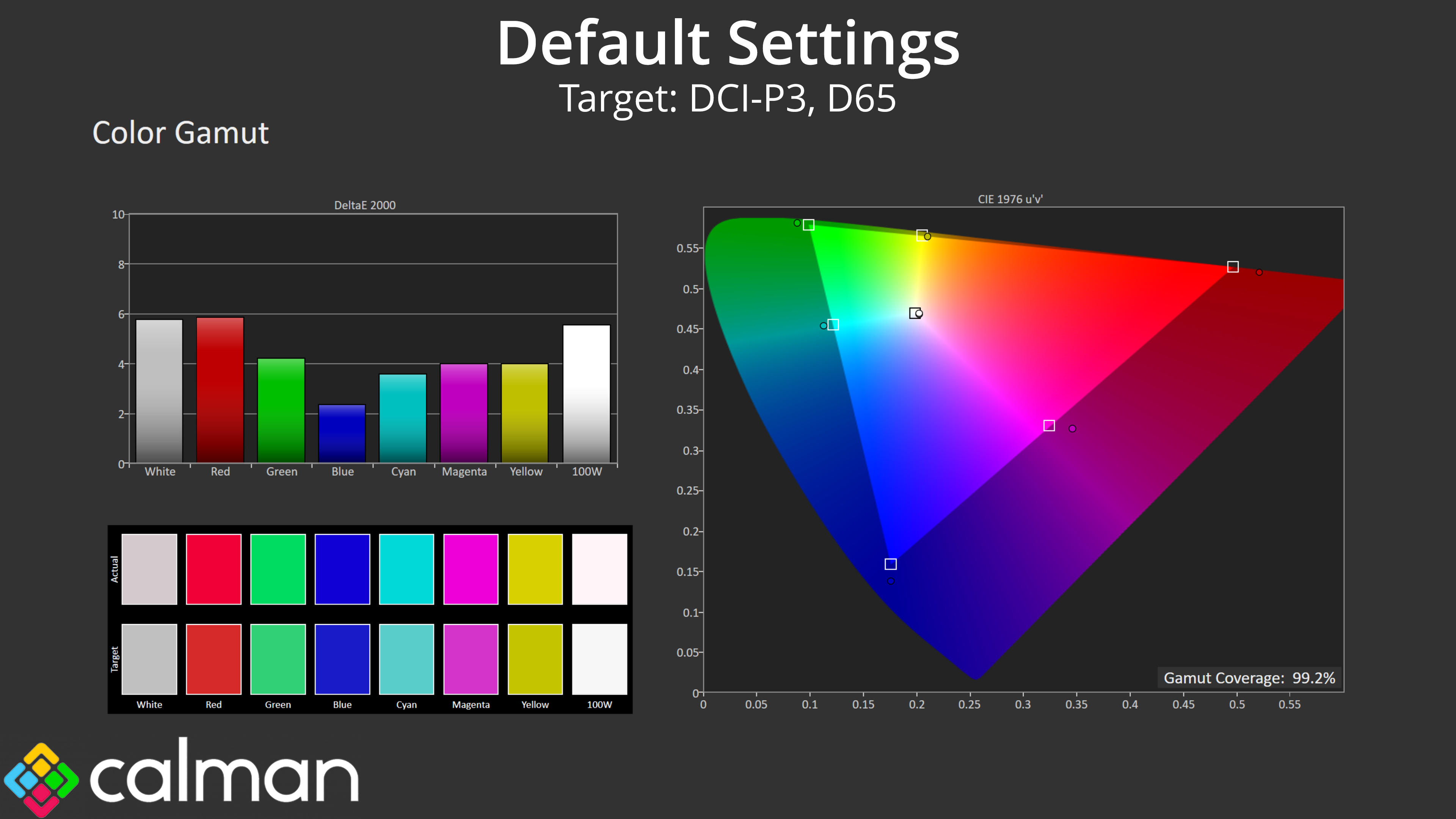 - Gamut coverage, primarily focusing on sRGB and DCI-P3 colour spaces.