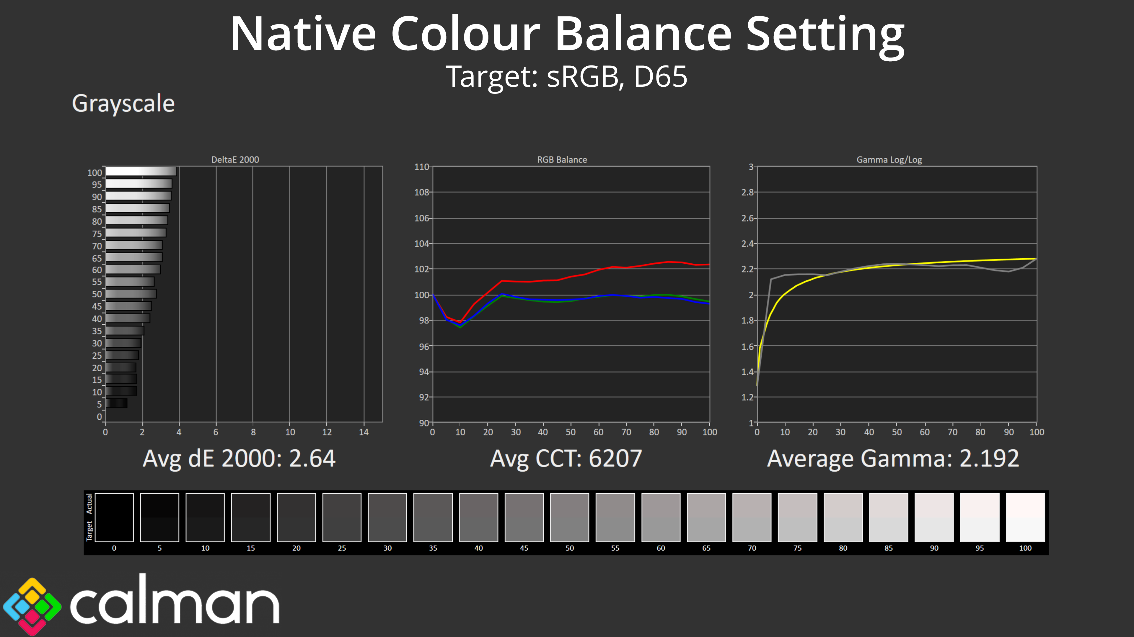 The colour balance is still too warm, and the gamma curve is slightly less accurate than what we saw previously, being slightly too bright for the darker shades, but then slightly too dark for the brighter shades.