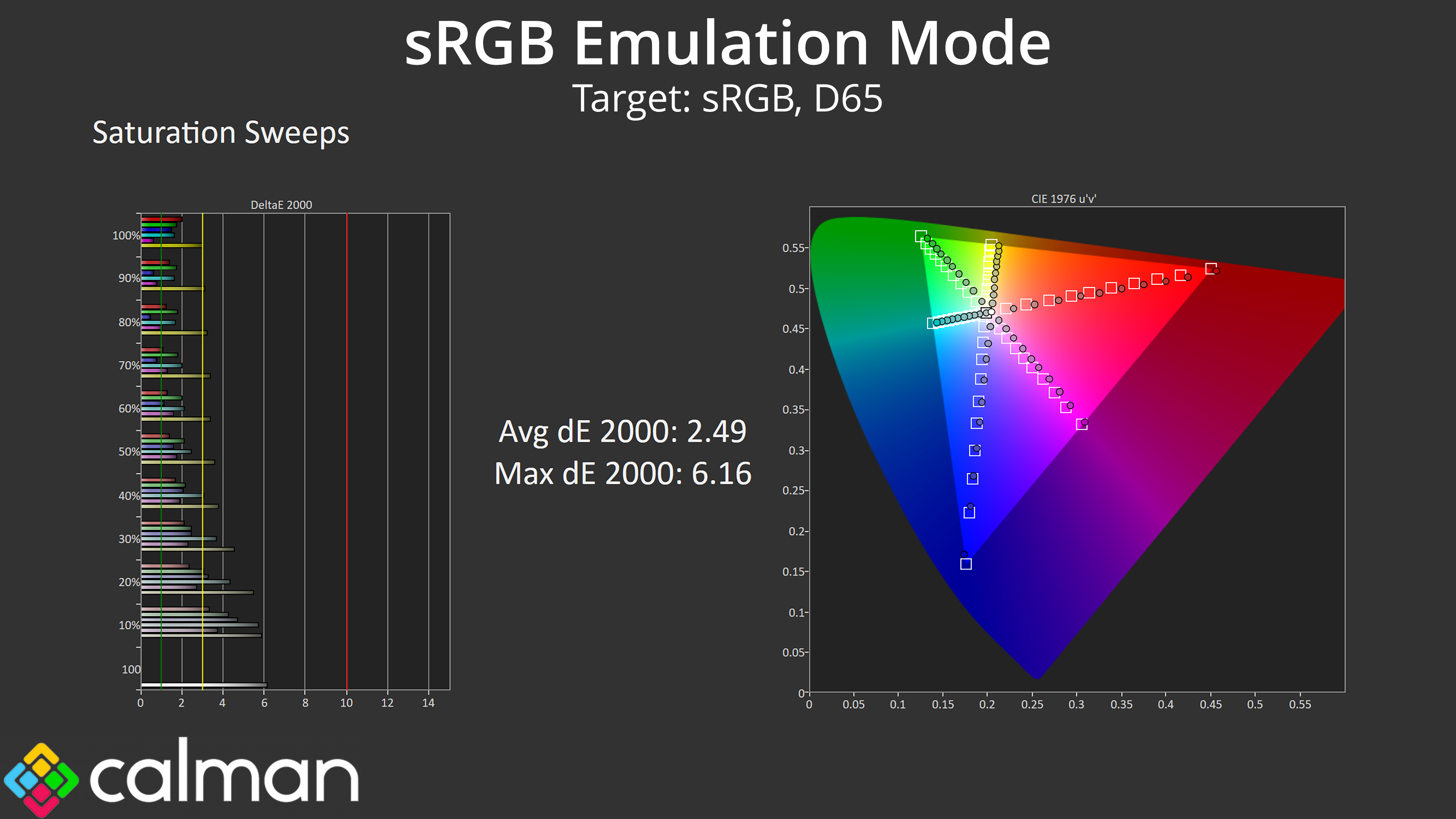 Saturation is definitely better than what we saw using the default (non-sRGB mode) settings, but it's not quite as accurate as I'd hope, particularly when looking at yellow shades.