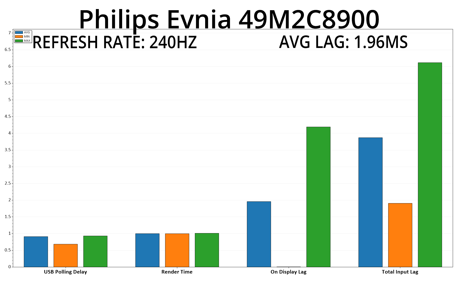 Input latency is a new area of our testing, using the OSRTT Pro tool. Average On Display lag is reported at 1.96ms which is less than a half of a single frame at 240Hz (4.16ms), so nothing at all to worry about, and we'll build up a chart of comparisons as we test more screens.