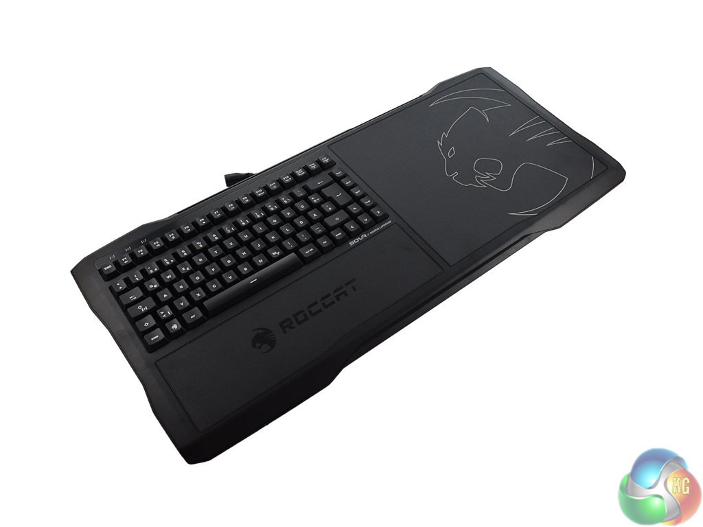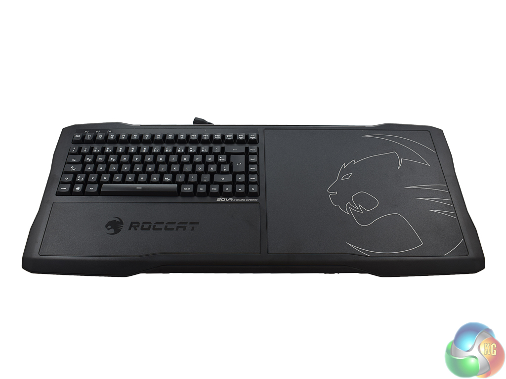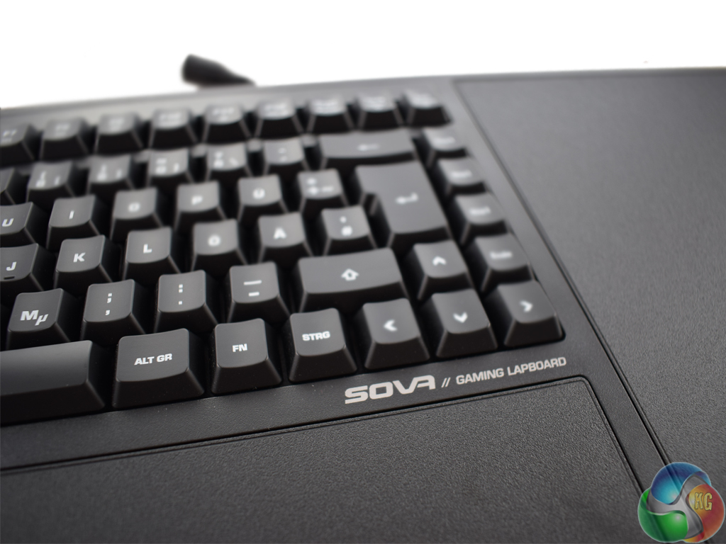 The first thing I noticed about the Sova is that there really is not a whole lot going on. The lapboard itself is fully black, with only a subtle grey Roccat logo embellished on the mousepad area of the lapboard, as well as Roccat branding across the wrist-rest area under the keyboard.
