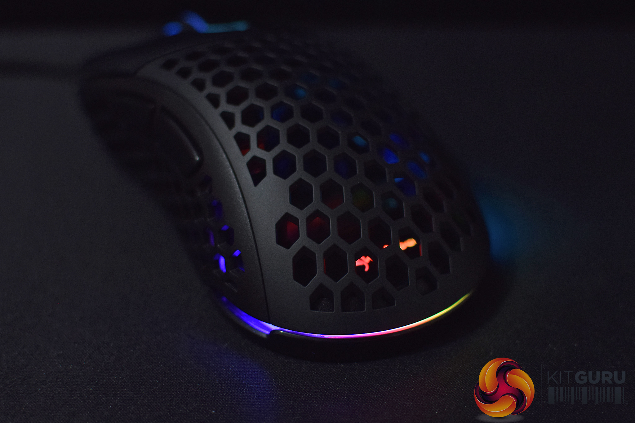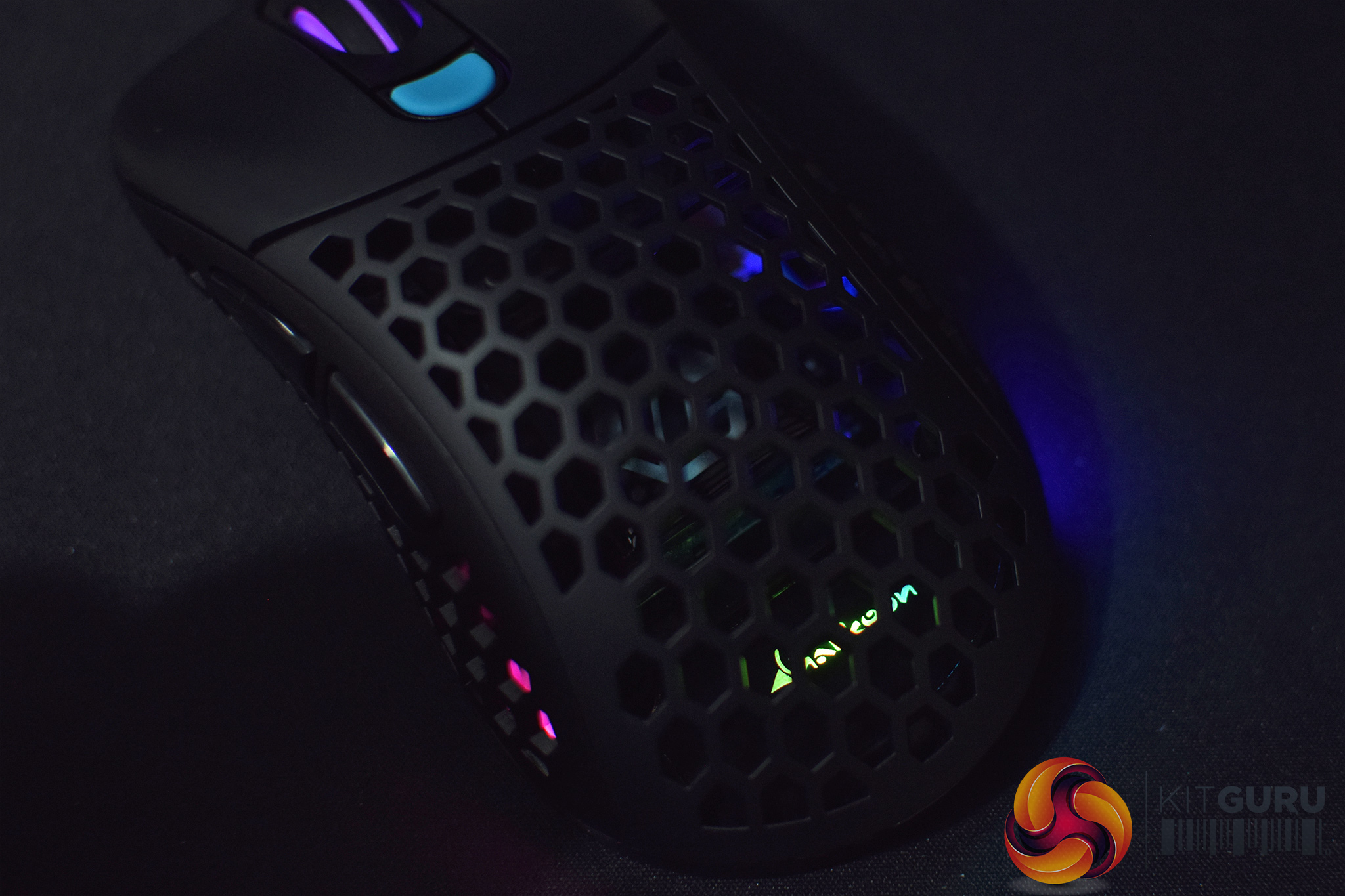 There's three RGB zones on the Light2 200 – the scroll wheel, the Sharkoon logo at the bottom of the PCB (under the shell), and then a small strip and the bottom of the mouse. I wouldn't say the mouse has blown me away with how good the RGB looks, primary because the LEDs aren't the brightest, but it's certainly passable and there's a number of effects to choose from in software.