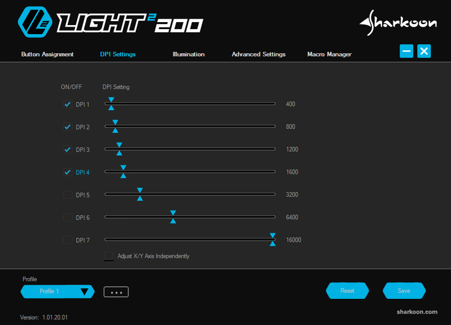 - DPI Settings enables you configure up to 7 DPI stages, adjustable in increments of 50
