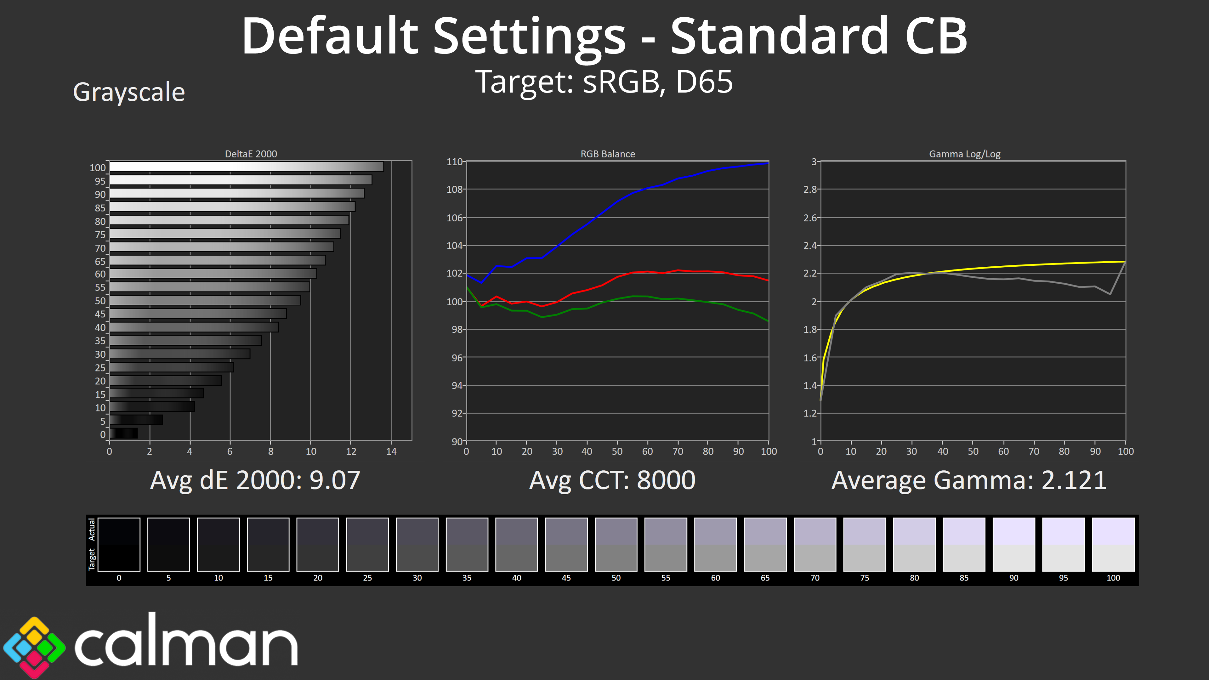 I next tried the Standard colour balance setting, but this was even worse, being significantly cooler to the point we saw an average CCT of 8000K, so this mode is not recommended.
