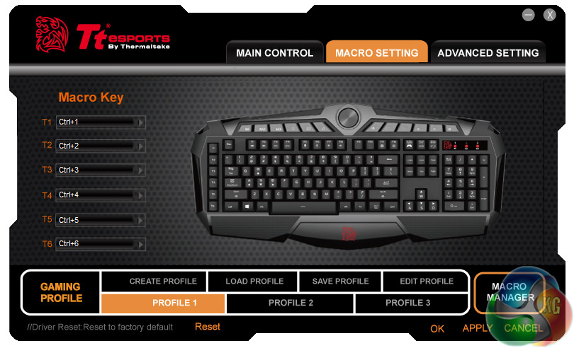 There is then the ability to assign macro keys. There are 6 macro keys, but the ability to set up to 3 gaming profiles, so essentially users can map 18 additional functions via the macro keys.