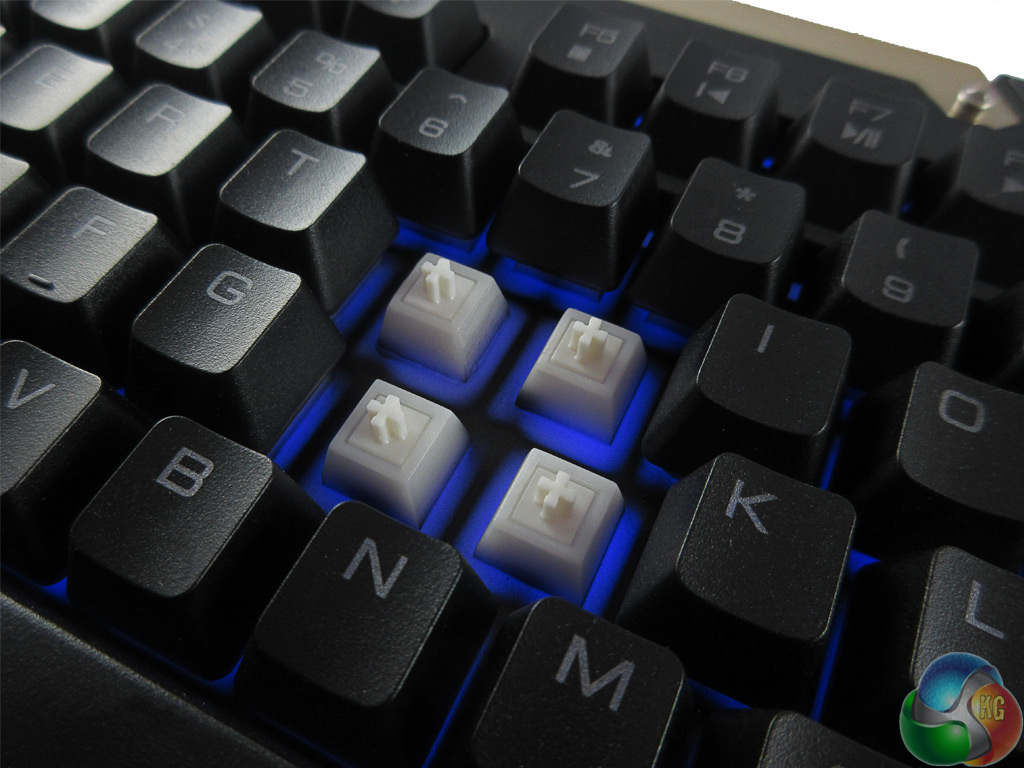On the topic of the backlight, I must say I was very disappointed with the blue backlighting. While the blue lights illuminate the base of the keyboard fairly evenly, the LEDs are so weak they do not actually illuminate the keys themselves. This means using the keyboard in the dark is not helped by the backlighting, making it pretty much pointless.