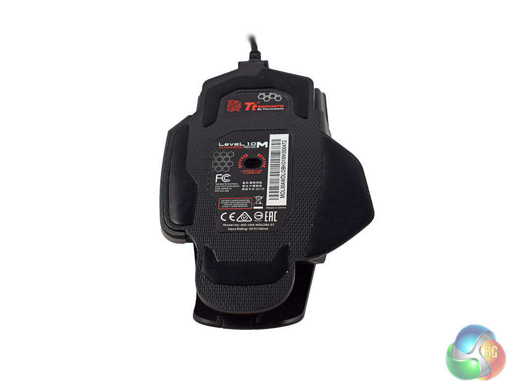 Finally, the base of the mouse. The Level 10M Advanced actually uses four Teflon feet – which glide very smoothly. You can also see the Avago 9800 sensor used here.