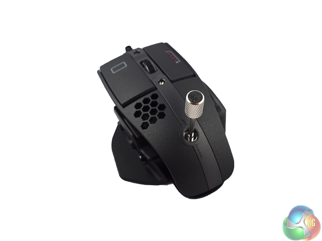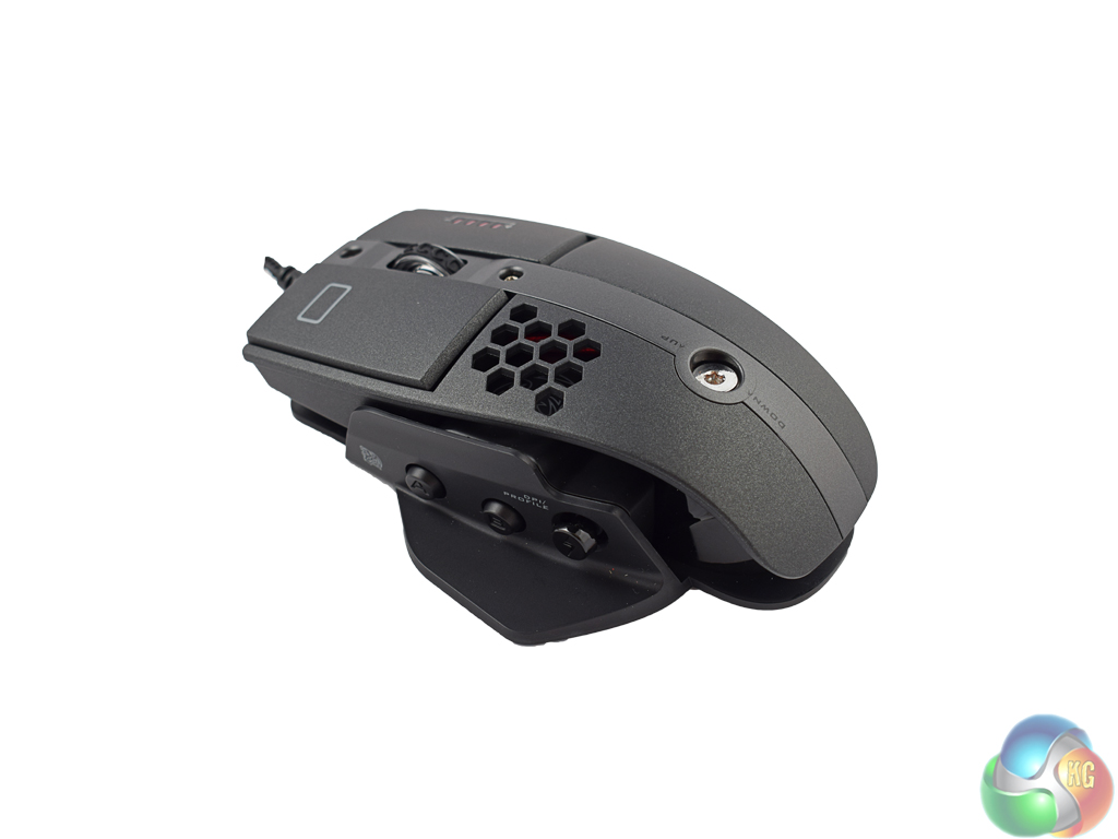 The mouse itself is certainly an elegant piece of kit. My sample is entirely black (though it looks more like a dark grey/charcoal to me) and is very sleek and attractive. You can clearly see the ‘open' nature of the design, too – done deliberately to keep your hand cooler than a typical ‘closed' mouse would.