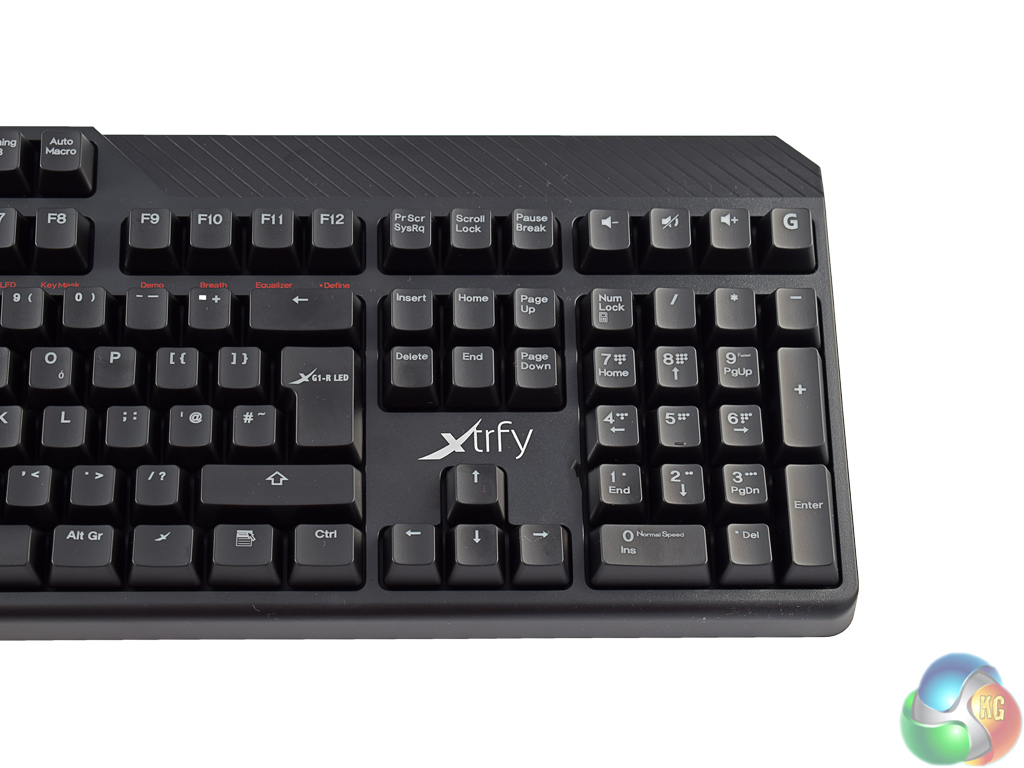 The keyboard itself is certainly a simple-looking piece of kit, but it does not look boring either. A cool Xtrfy logo sits above the arrow keys, while the top-right edge of the keyboard has a textured panel to add interest to an otherwise plain looking board.