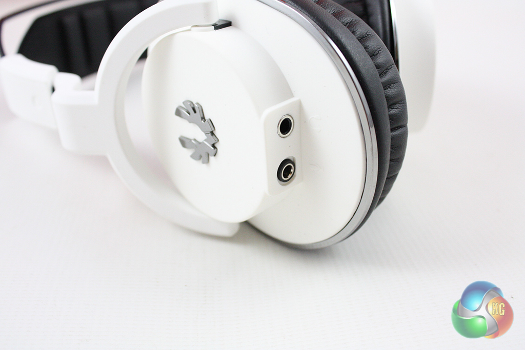 There are two 3.5mm connectors in the left earcup, one for the cable to your PC and one which the microphone attaches to. The included microphone is a flexible boom model which is covered in rubber for durability.