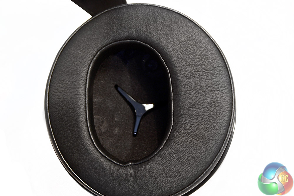 The ear cups are easily the centre piece of this headset, with big, chunky plastic that does not feel too gamer-like, thanks to the smooth edges and lack of over the top imagery or lighting. The cups use a leatherette padding and enclose the ear rather than resting against it or in it.