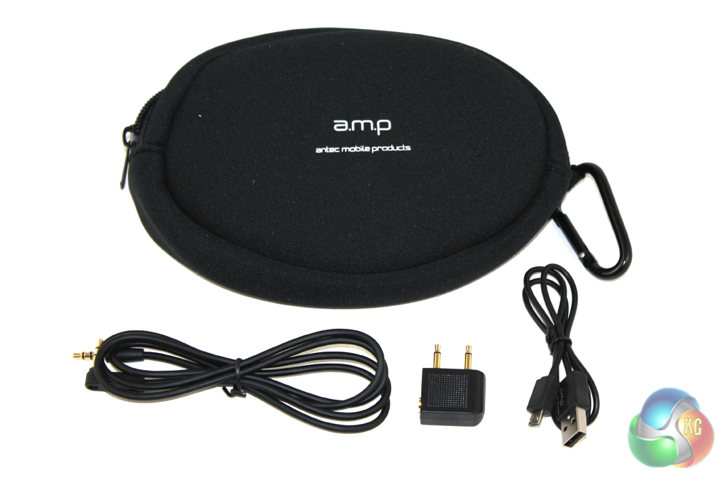 Inside the box there are a number of accessories included. These consist of a USB cable for charging, a 3.5 mm cable and an airline adapter.