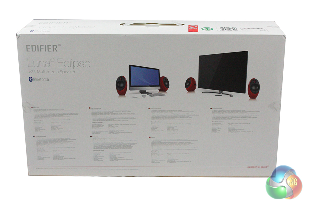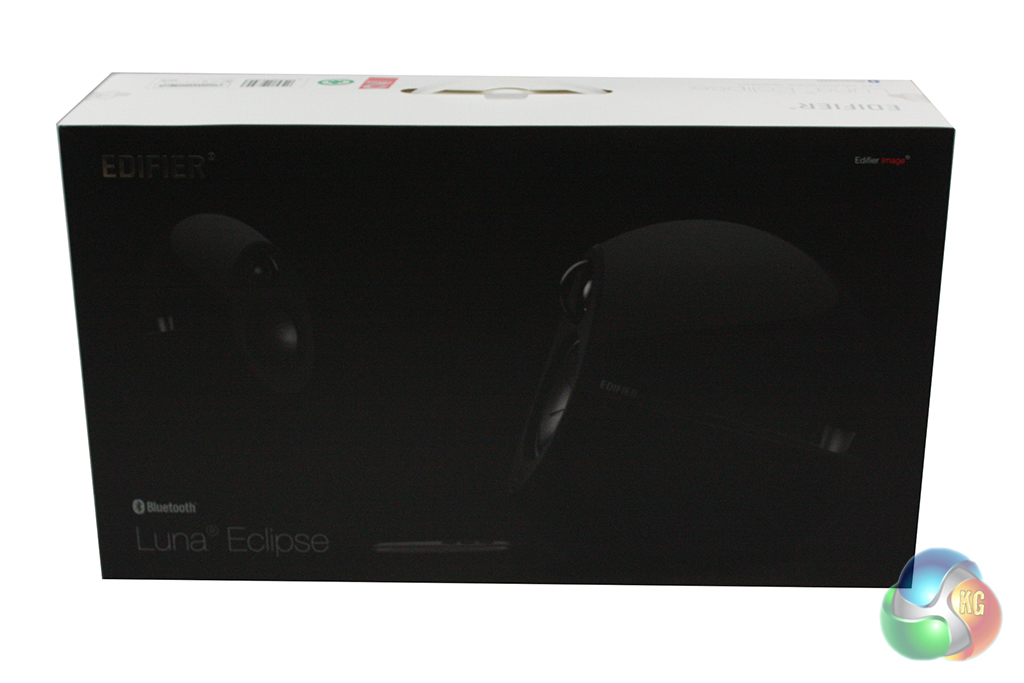 The Luna Eclipse is supplied in a substantial, high quality box. The exterior is decorated in a black and white livery which looks very exclusive indeed. The front features a large image of the speaker set.