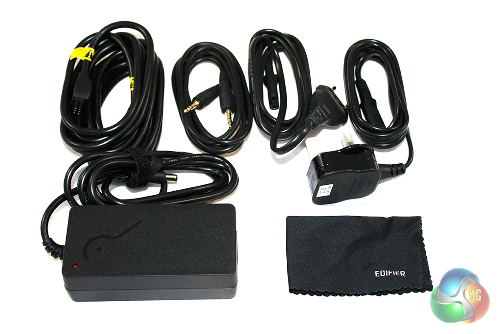 Inside the box, we find a number of accessories. These include both UK and EU power cords, a 3.5mm audio cable and a remote control.