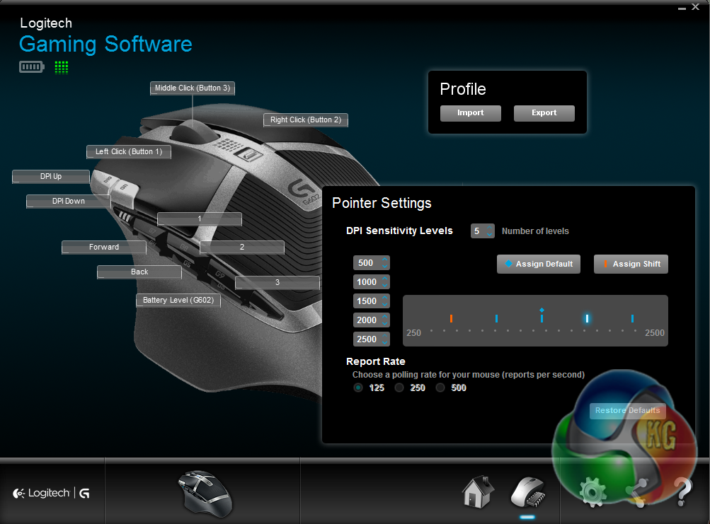 Logitech seem to have updated their software from previous peripherals we've reviewed. It is now called simply ‘Logitech Gaming Software' and has a much simpler interface than before. This can be downloaded from Logitech's website to ensure that you have the latest version installed.