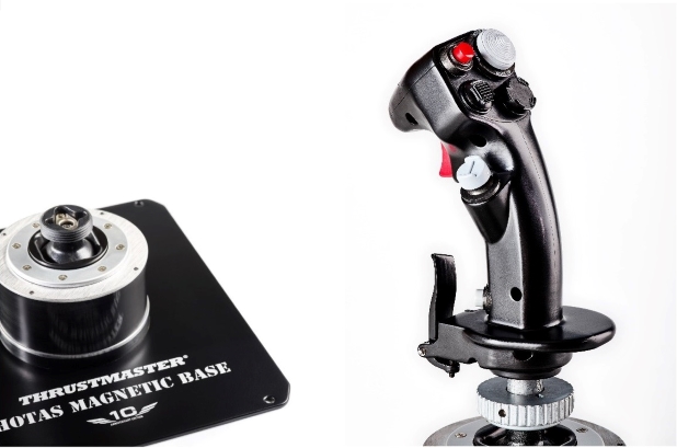The HOTAS Magnetic Base features a detachable metal plate for desk or cockpit-style use and Hall Effect AccuRate Technology, with 3D magnetic sensors for ultimate precision that won’t decrease over time. The base is compatible with all flight simulator games and Thrustmaster flight stick grips including the HOTAS Cougar, HOTAS Warthog, F-16C Viper and F/A-18C Hornet.