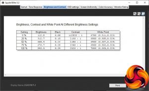 - A monitor’s contrast ratio at various brightness levels in the OSD.