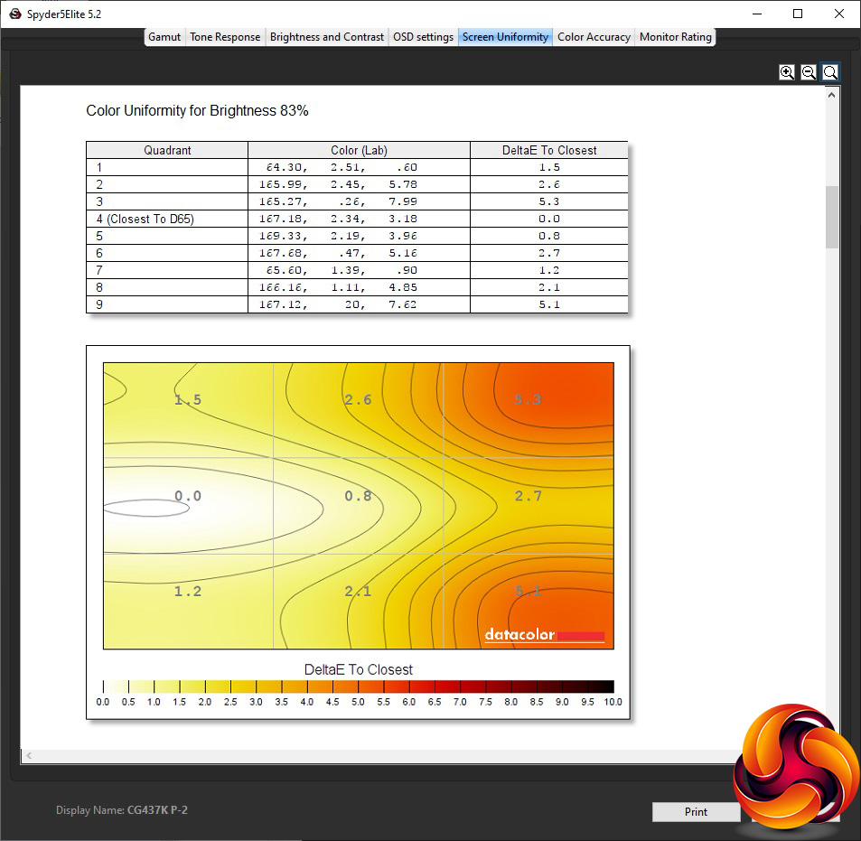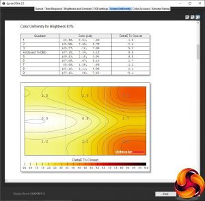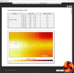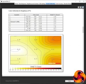 Our main test involves using a DataColor Spyder Elite 5 Colorimeter to assess a display’s image quality. The device sits on top of the screen while the software generates colour tones and patterns, which it compares against predetermined values to work out how accurate the screen is.