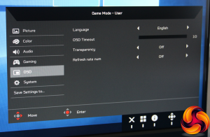 Overall, the OSD is very comprehensive. The only omission we can think of is adjustment of colour temperature by K value, but you can achieve the same results using RGB, and the six-axis option provides extreme fine tuning if desired. So there is more than enough adjustment available for gaming and general entertainment or work usage.