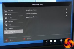Although the OSD Modes are presets, you can overwrite them with your own configurations for the three different game types represented – Action, Racing and Sports.