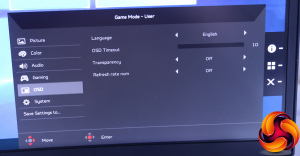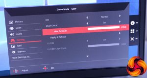 The most significant thing to be found in the Gaming menu is the ability to overclock the screen refresh all the way to 200Hz.