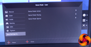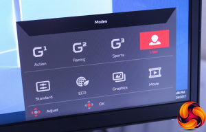 But once you've found the Modes, they do at least present a decent array of options. The three gaming presets are available here, plus the User option will recall the last custom settings you used. There are Standard, ECO, Graphics and Movie modes, which cover most of the everyday types of use.