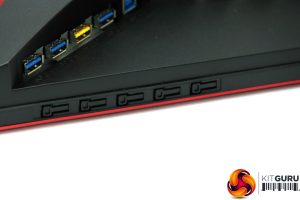 This is a good-looking monitor, with flashes of red to add some excitement to the otherwise matt black appearance. The angular stand is mean and purposeful, with a cable-tidy hole towards the bottom. The overall design makes the expected statement of serious gaming credibility.