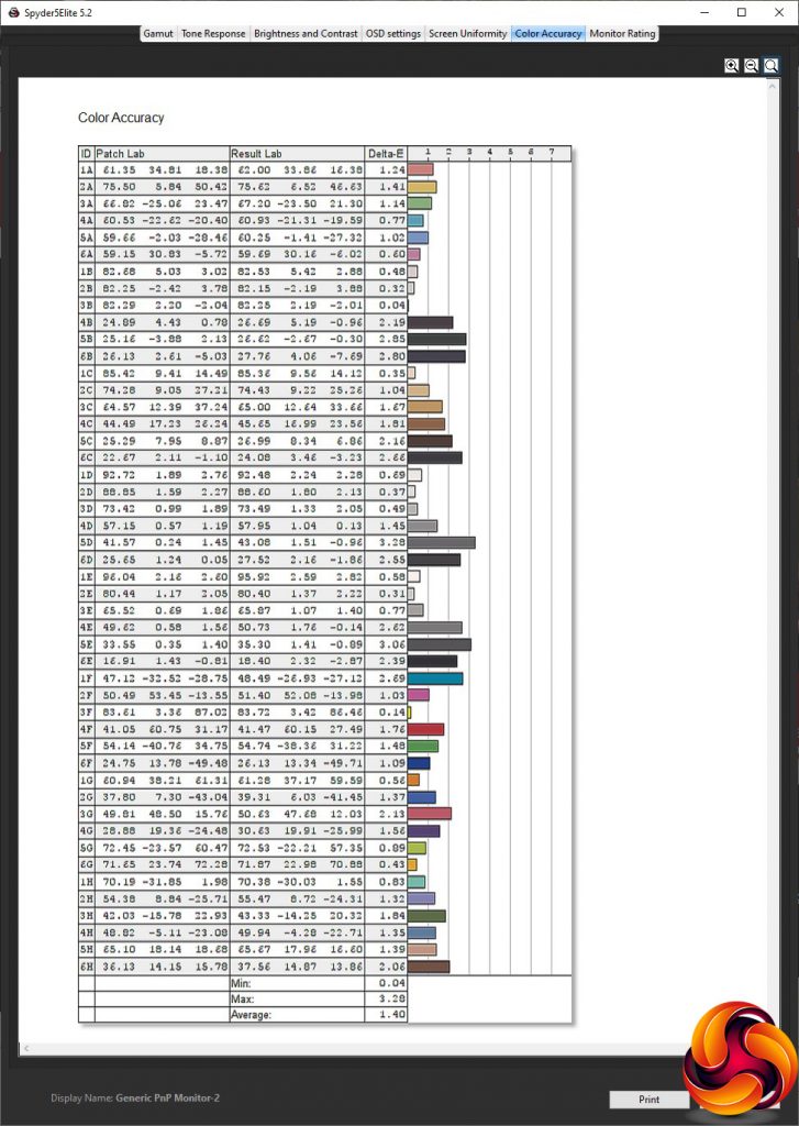 - The colour accuracy, expressed as a Delta E ratio, with a result under 3 being fine for normal use, and under 2 being great for colour-accurate design work.