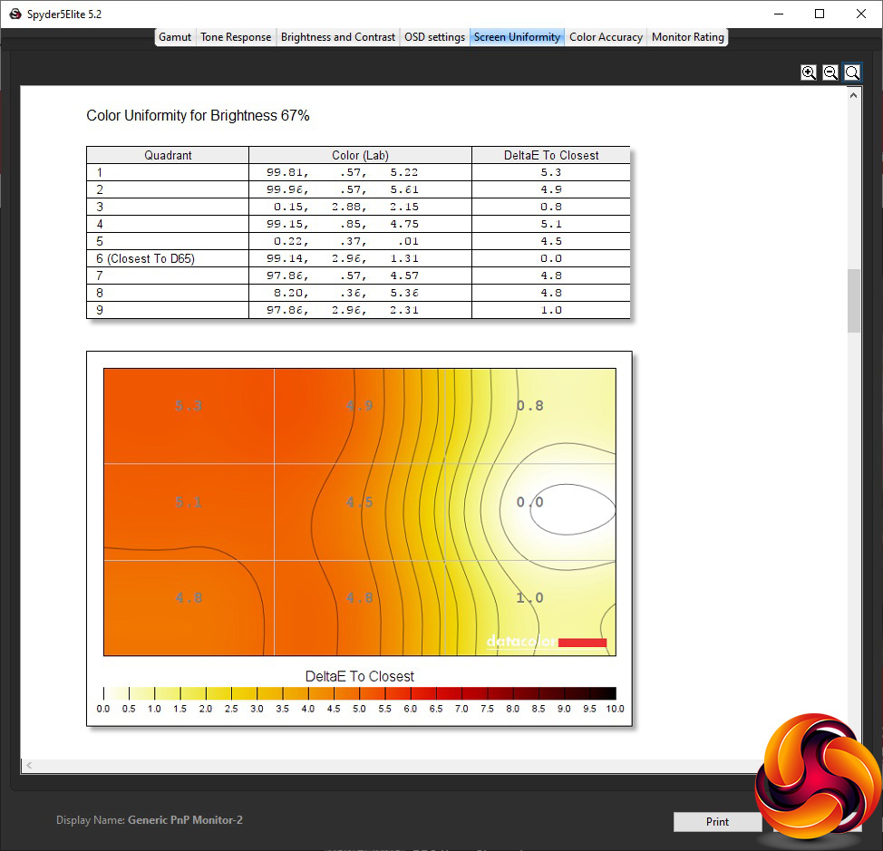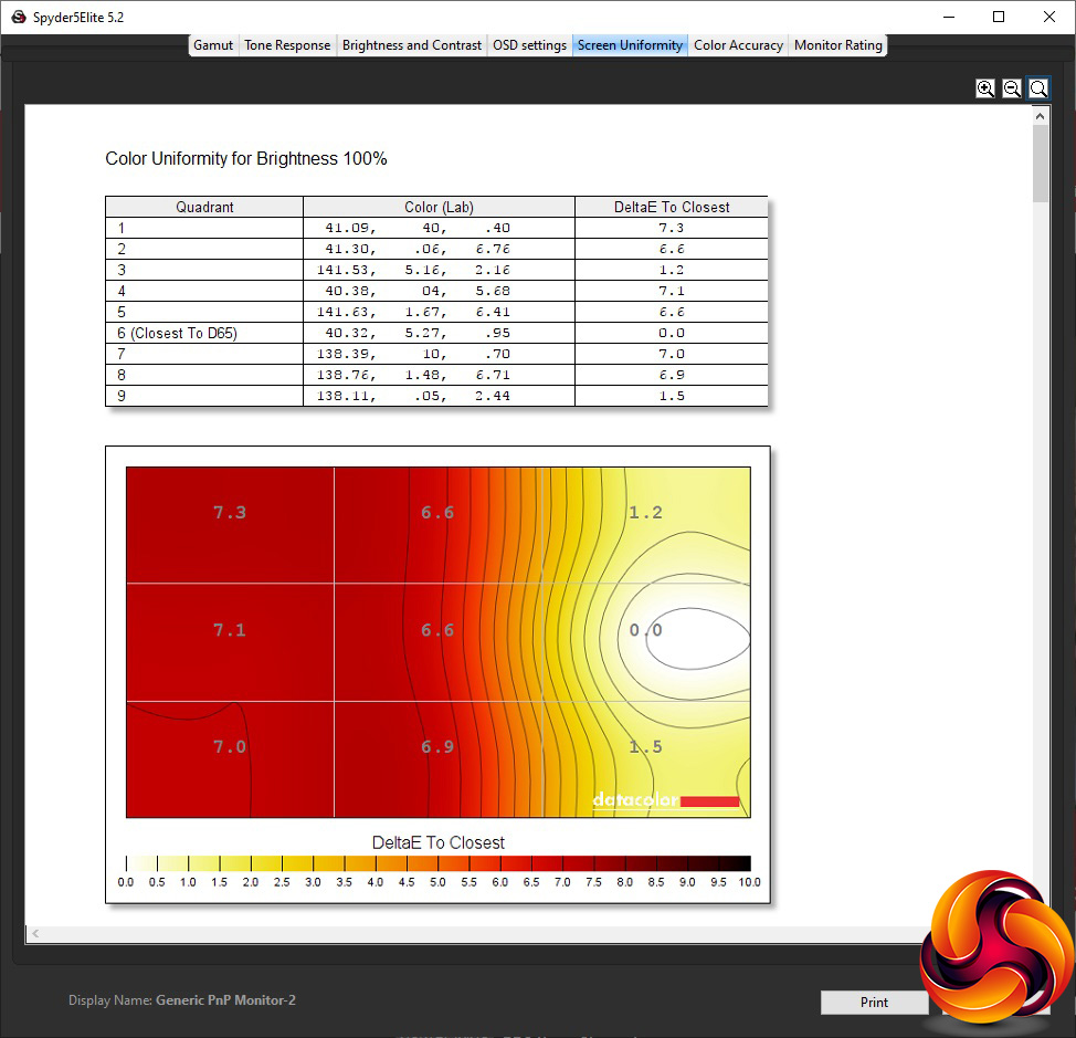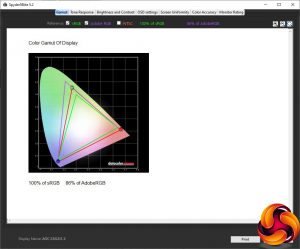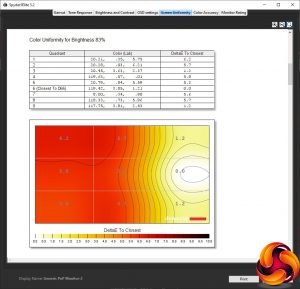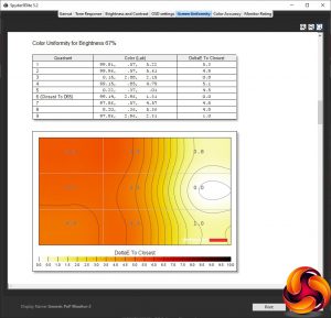 Our main test involves using a DataColor Spyder Elite 5 Colorimeter to assess a display’s image quality. The device sits on top of the screen while the software generates colour tones and patterns, which it compares against predetermined values to work out how accurate the screen is.