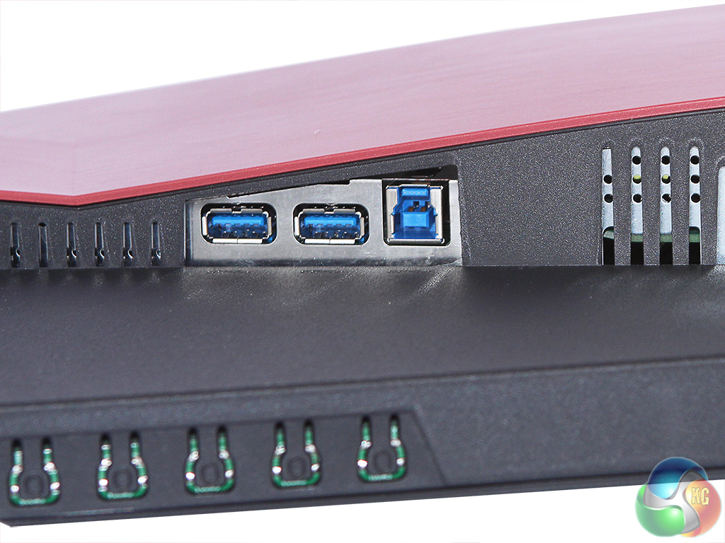 The upstream port and two downstream ports for the USB 3.0 hub are found on the right-hand side, and in front are the five buttons to control the OSD. Without the Quick Switch keypad, these are your sole method for accessing the screen's configurations.