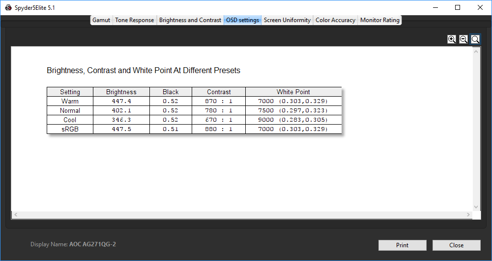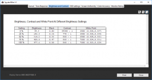 - A monitor’s contrast ratio at various brightness levels in the OSD.