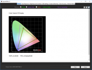 In the case of the AGON, we performed the primary testing in default preset mode – Gamma 1 and Warm colour profile. We also left the monitor at 60Hz rather than 165Hz, as higher frequencies can reduce image quality performance with some screens.