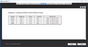 The AG271QG's more pedestrian colour settings than most gaming monitors only provide a small range of different configurations. The Warm and sRGB options are hardly different at all, with the same brightness and white point readings, and almost the same black level and contrast.