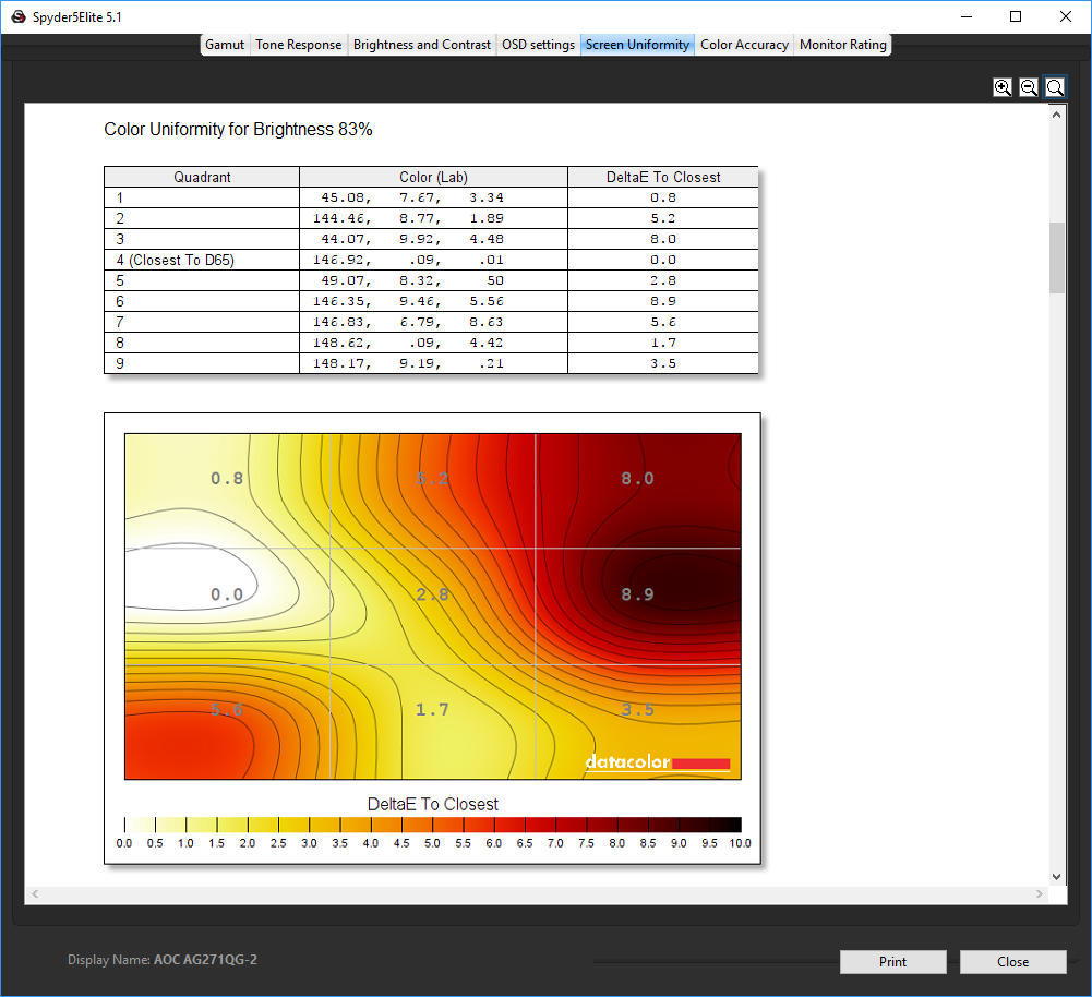 - The brightness deviation across the panel.