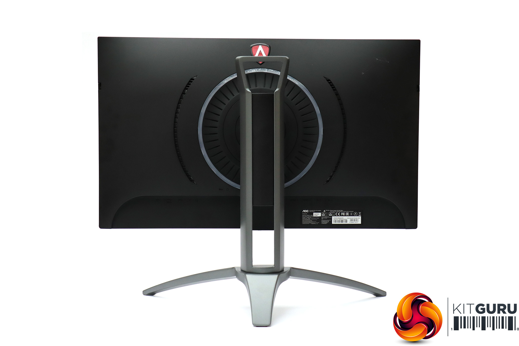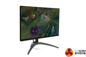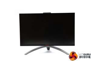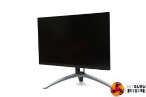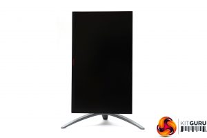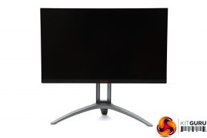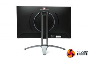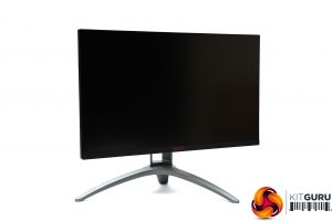 The AG273QX presents a pretty serious appearance, which is the trend in gaming monitors. We do seem to be seeing a little less bling and more mature design motifs, which isn't such a bad thing. Apart from the bottom edge, the panel bezels are invisible until you turn the screen on. There is some red lighting from the centre bottom of the main unit when it's on and the rear, but otherwise the colouring is black or dark grey, and the stand has a reassuringly industrial look to its frame.