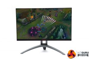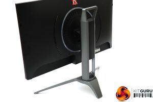 The wide feet mean you can't put this screen on a small raised desk area, but also make for greater overall stability. We also think the look is an improvement over the AOC AGON AG271QX that this screen replaces