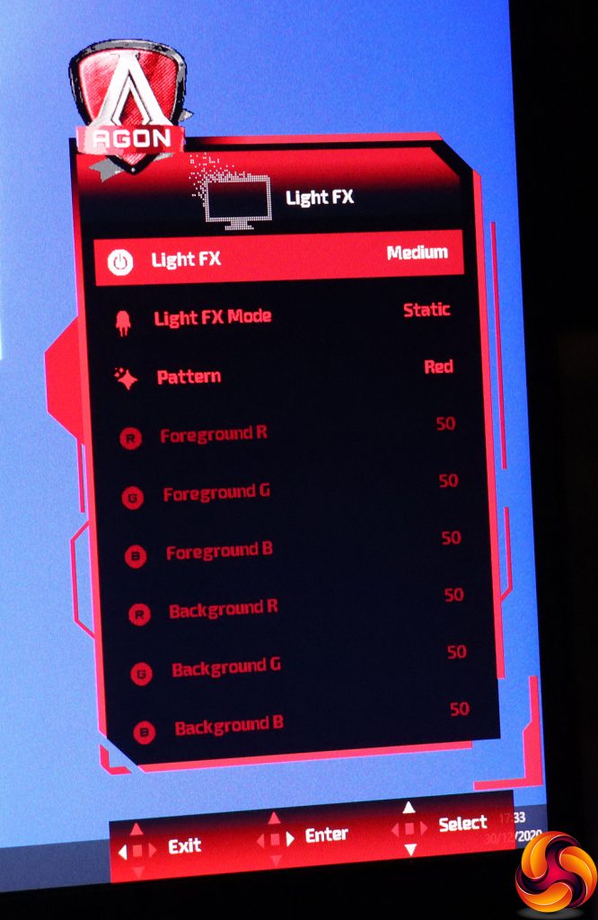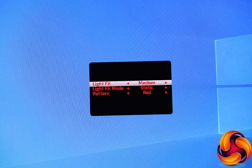 You get a few more adjustments for Light FX in the main menu, with the ability to customise the foreground and background intensities of red, green and blue, depending on the pattern option and Mode you have selected.