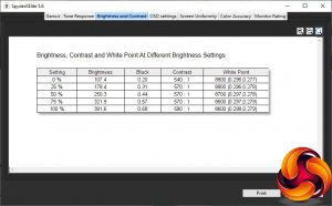 The contrast, as expected for a TN panel, is low, ranging from 540:1 to 580:1. The biggest surprise is just how high the white point is. This starts at 8800K and goes down a little to 8600K at 100 per cent brightness, which are very “cool” values for what is supposed to be a default position.