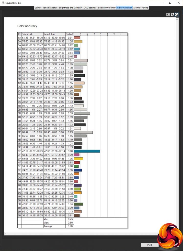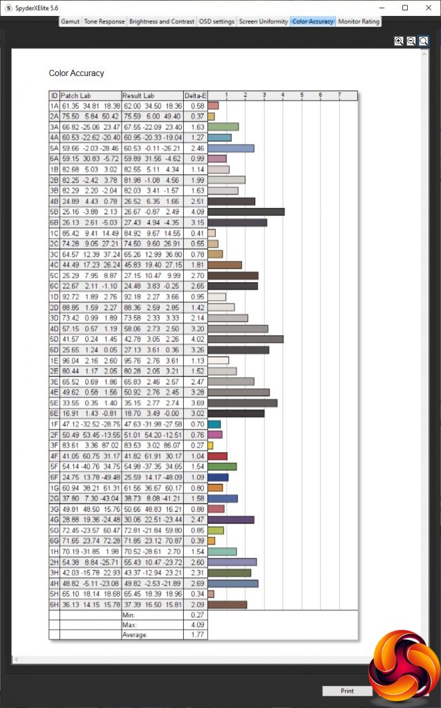 - The colour accuracy, expressed as a Delta E ratio, with a result under 3 being fine for normal use, and under 2 being great for colour-accurate design work.