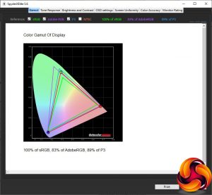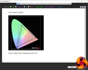 The gamut makes for a decent start. The sRGB result of 100 per cent is as expected, and the AdobeRGB score of 83 per cent is also very good, with a commendable 89 per cent DCI-P3 gamut too.