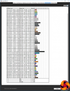 There's quite a bit of variation between the different OSD settings, and some of these provide a higher brightness than Gaming 1, although still not close to the 300cd/m2 rating. The FPS mode is quite bright at 228.3cd/m2, but offers relatively low contrast of 540:1, and a fairly cool white point of 8400K. RTS is the brightest of all, with 249.9cd/m2, but with the lowest contrast of 460:1, and a mid-range 8400K white point. Racing mode uses a similar 223.5cd/m2 brightness to FPS, but a much greater 820:1 contrast and the same 8400K white point as FPS.