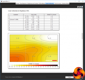 Brightness uniformity is also very good, with only the top right-hand corner going above 5 per cent variation.