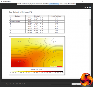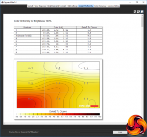Our main test involves using a DataColor Spyder Elite 5 Colorimeter to assess a display’s image quality. The device sits on top of the screen while the software generates colour tones and patterns, which it compares against predetermined values to work out how accurate the screen is.