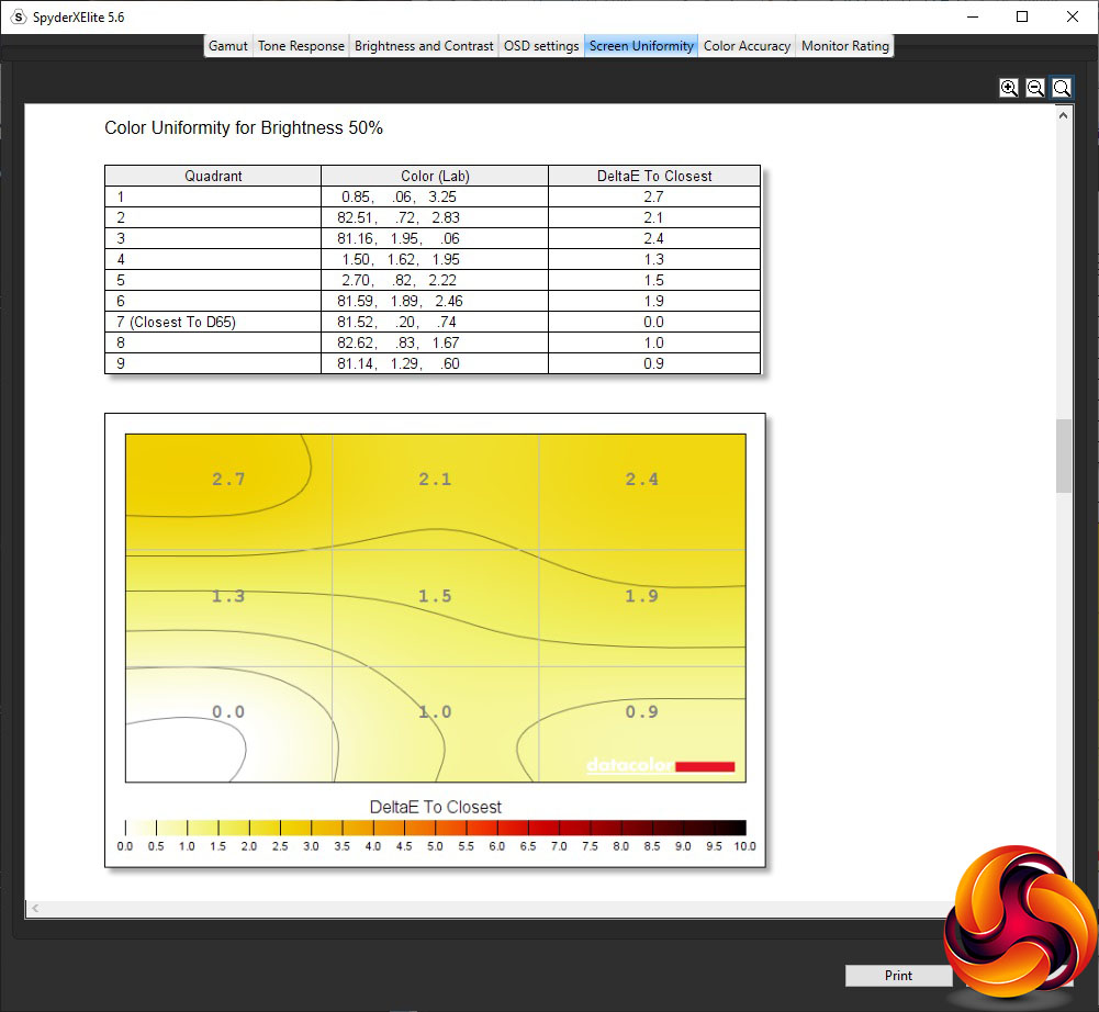 Brightness uniformity is also nothing to worry about, with only the bottom right corner at 10 per cent aberration and top left at 9.5 per cent.
