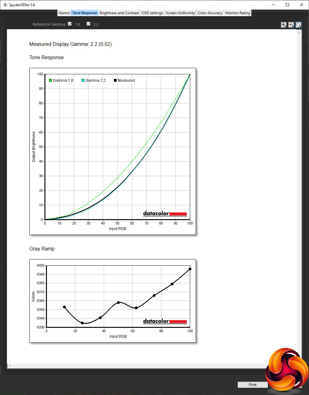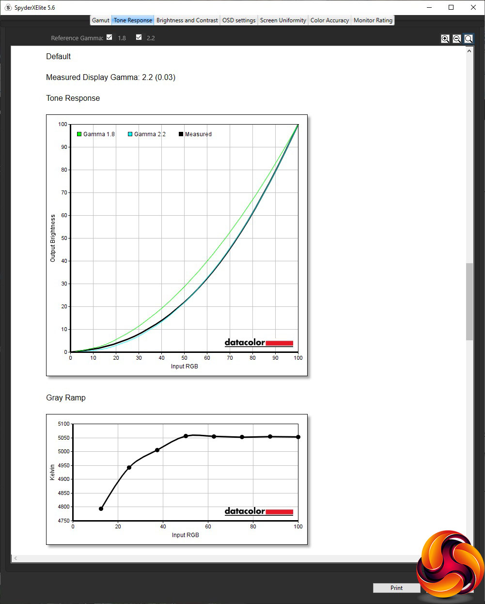 As we surmised, the Default gamma mode equates to a value of 2.2. The Relative Gamma shifts are precisely accurate, too, with -0.6 producing 1.6, -0.3 producing 1.9, +0.3 producing 2.5 and +0.6 producing 2.8. This is reassuringly consistent.
