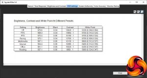 Only the white point varies noticeably, with the default of 5100K, the Game Modes all using 6700K, and values from 5900K for Reading to 6600K for Multimedia. We would have expected much more variation in these presets, considering the different usage scenarios they represent.