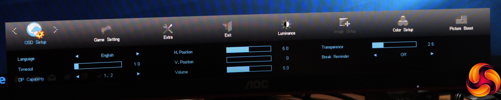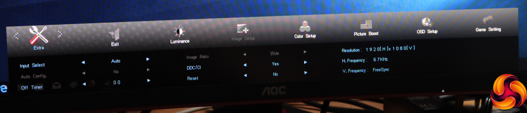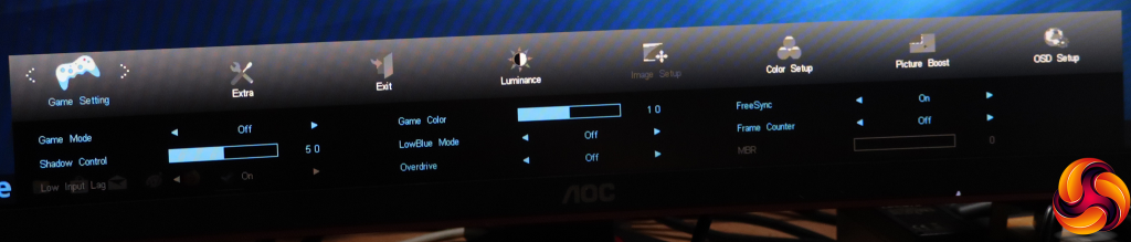 Overall, this is the standard OSD for a gaming-oriented AOC screen. The separation of gaming and regular presets is slightly confusing, but there's plenty of control over the most important features of the screen.