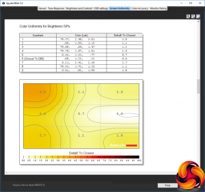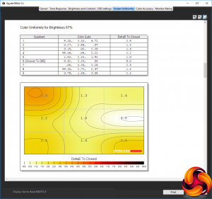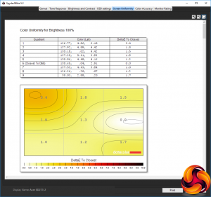 Our main test involves using a DataColor Spyder Elite 5 Colorimeter to assess a display’s image quality. The device sits on top of the screen while the software generates colour tones and patterns, which it compares against predetermined values to work out how accurate the screen is.